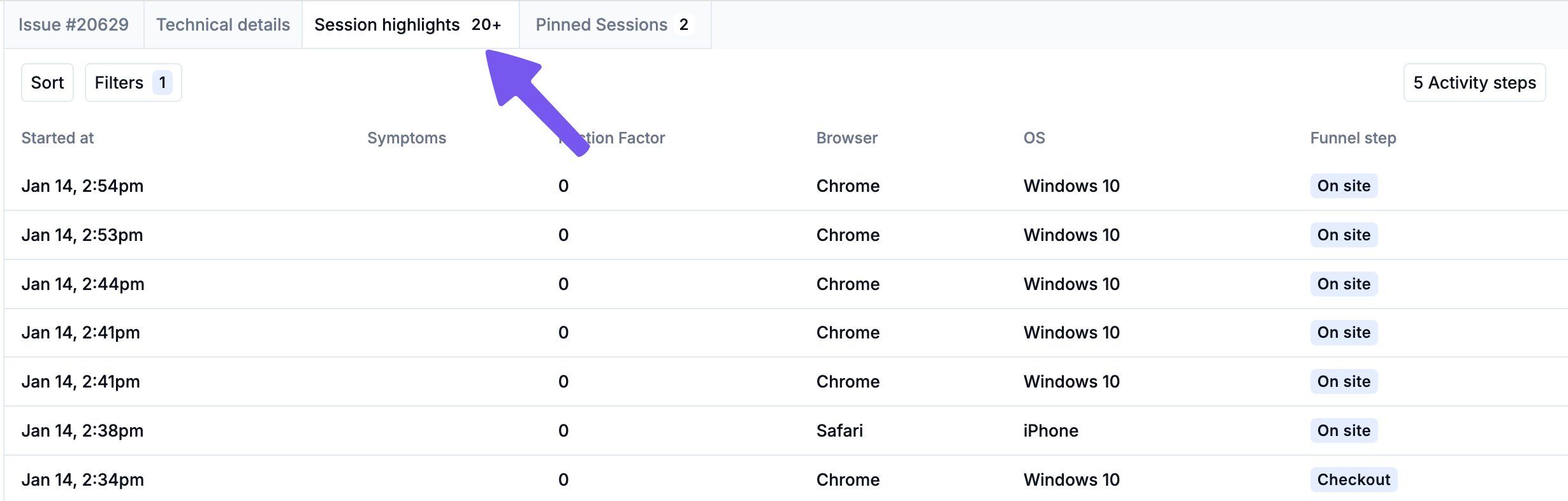 Monitor the Session Highlights tab to see if new sessions with the error appear after the fix is implemented.