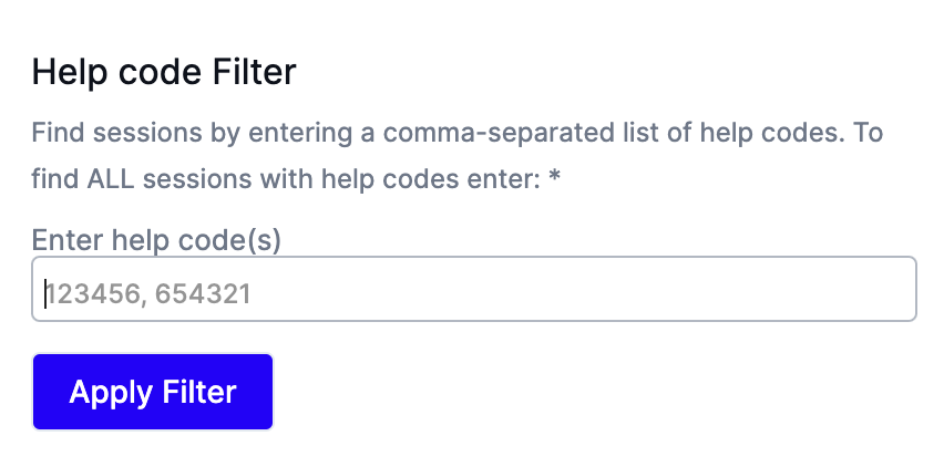 You can also filter by multiple help codes by entering a series of codes separated by commas, or enter * to pull all sessions with help codes.