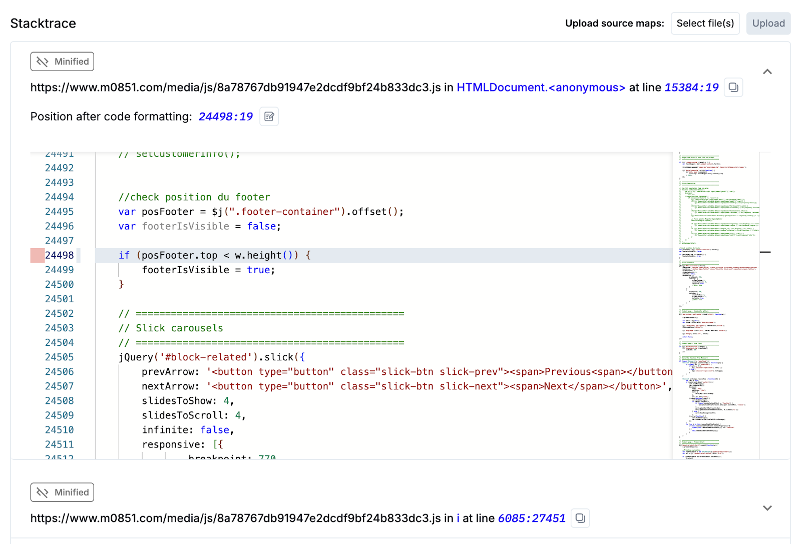 For JavaScript errors, Noibu helps engineers find the exact line of code that triggered an error. Learn more about stack traces.