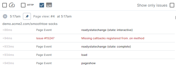 The NoibuJS script captures and displays page lifecycle events to lend additional context to what’s happening on the browser during a user’s session. During the debugging process, a developer can assess what the page was doing during a session when an issue occurred, which may uncover the source of the issue and expedite its resolution.