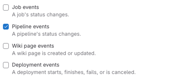 Check the Pipeline Events box. This instructs the webhook to pass along changes to the final step in the deployment pipeline.