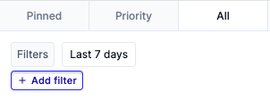 Pin | Filter issues by the whether they are Pinned or Unpinned. Note that Classification filters can also use “Is Not” logic. Note: Benign issues are always exempt from Priority View, but you can pull issues of all states in All Issues view. |