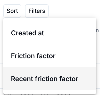 By default, The Sessions table is sorted by Recent Friction Factor. Click the Sort button to change sorting to the session date or overall Friction Factor.