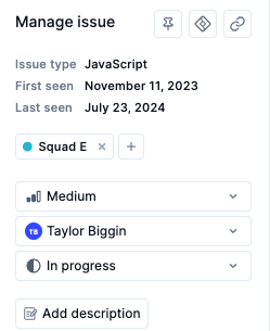 Urgency: Set the issue's urgency as part of the triage process. An issue's urgency can be Unset, High, Medium, or Low.
