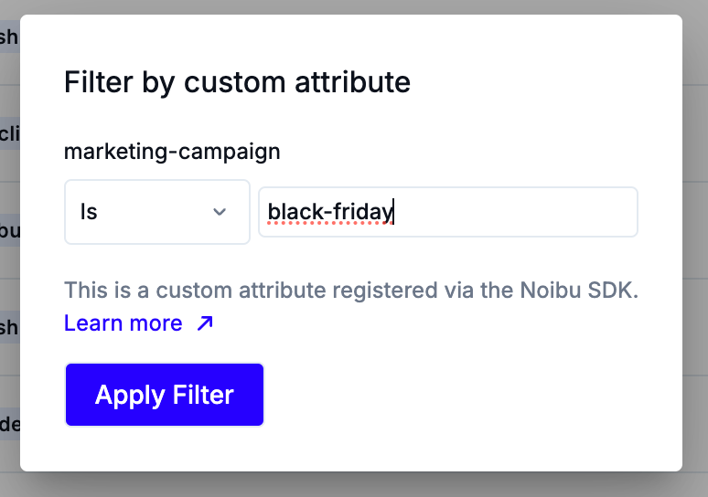 If you use UTM parameters in your URLs as part of a marketing campaign, Noibu automatically captures utm_campaign, utm_medium, utm_source, and utm_content as custom attributes.