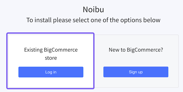 1. Go to Noibu's app listing on the BigCommerce App Marketplace and click 'Install'. If required, click 'Log in' to authenticate into your BigCommerce account.