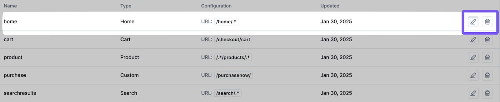 To edit an existing page group, click the pencil icon. To delete a page group, click the trash icon.