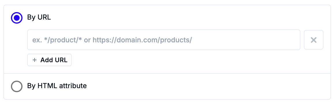 Add pages: the method in which pages on your site will be assigned to the page group – by specifying a URL pattern, or by adding a HTML attribute to relevant pages on your site. See more details below.