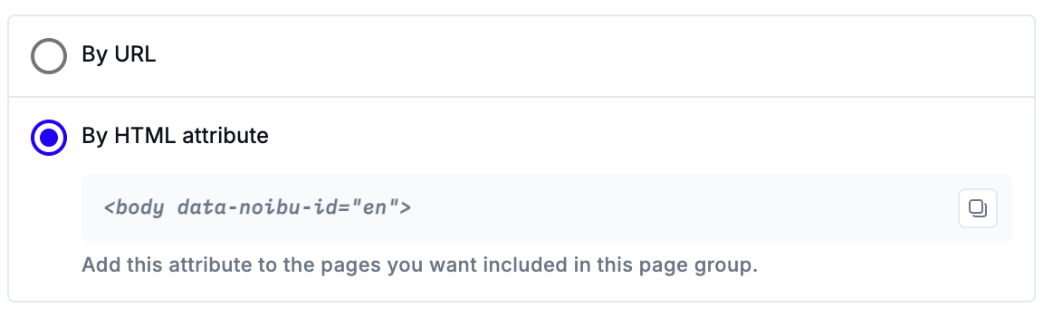 Page groups can also be configured by automatically adding pages to a group based on the presence of an HTML attribute. This method requires a developer to update your site’s code, and can be helpful for tracking every page using a specific template by including the identifier directly in the HTML.
