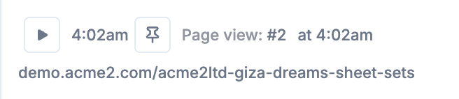 The session timeline is divided into the individual pageviews that make up the full user session on your site. Buttons along the left side of the timeline allow you to play or pin a segment of the session.